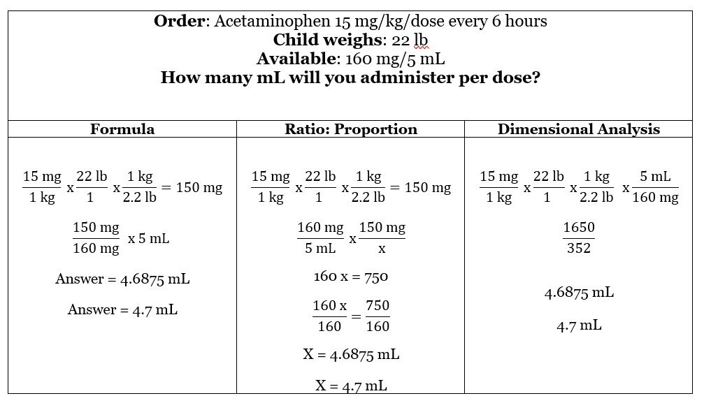 Order: Acetaminophen 15 mg/kg/dose every 6 hours
