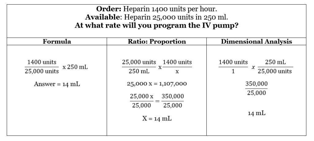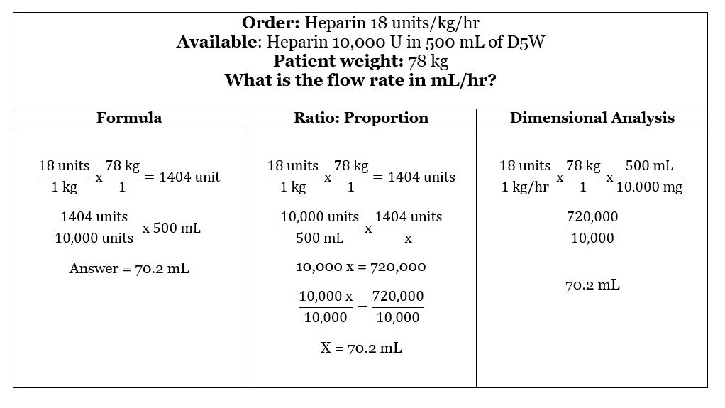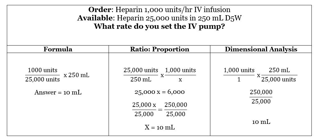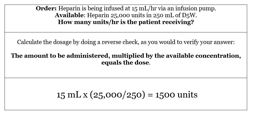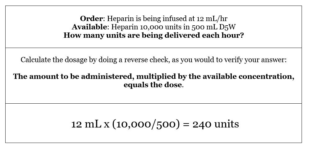 Order: Heparin is being infused at 12 mL/hr via an infusion pump. Â