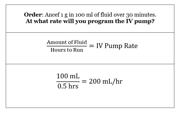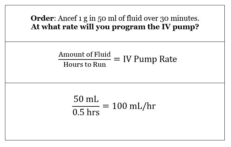 Order: Ancef 1 g in 50 ml of fluid over 30 minutes.