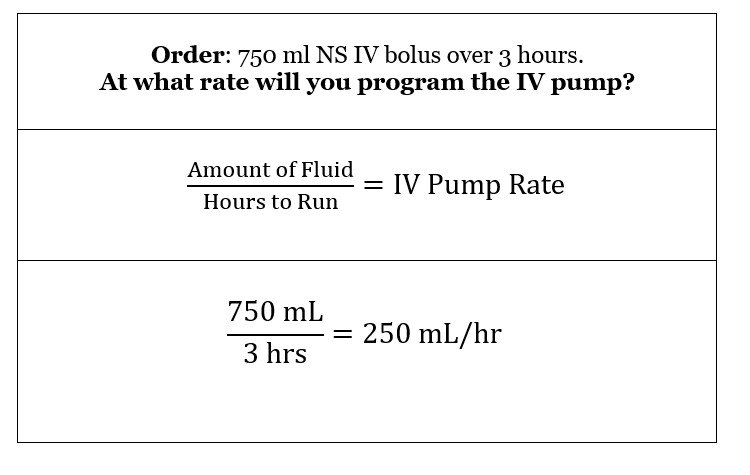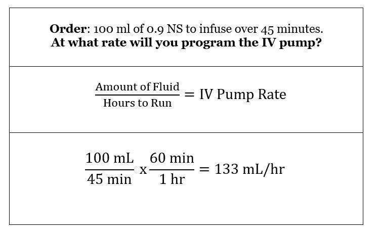 Order: 100 ml of 0.9 NS to infuse over 45 minutes.