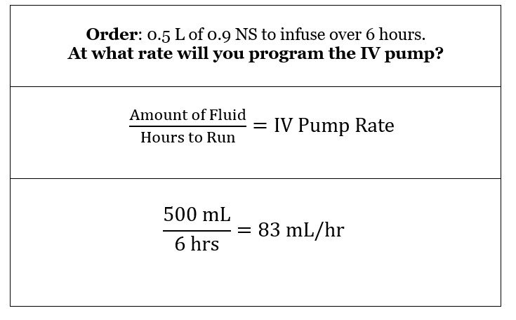 Order: 0.5 L of 0.9 NS to infuse over 6 hours.