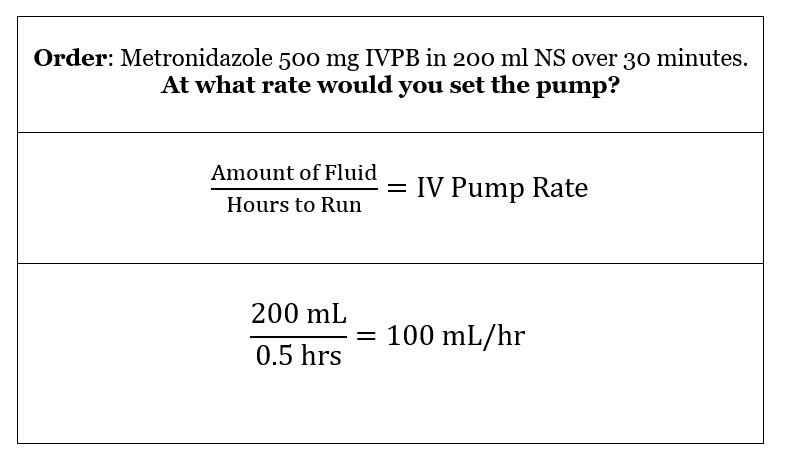 Order: Metronidazole 500 mg IVPB in 200 ml NS over 30 minutes.