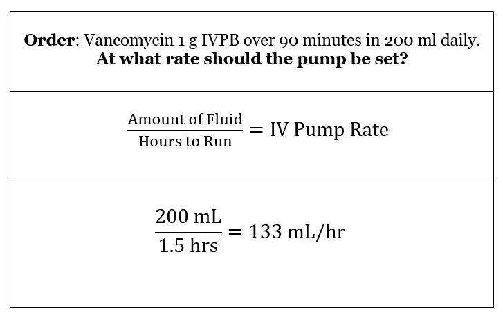 Order: Vancomycin 1 g IVPB over 90 minutes in 200 ml daily.